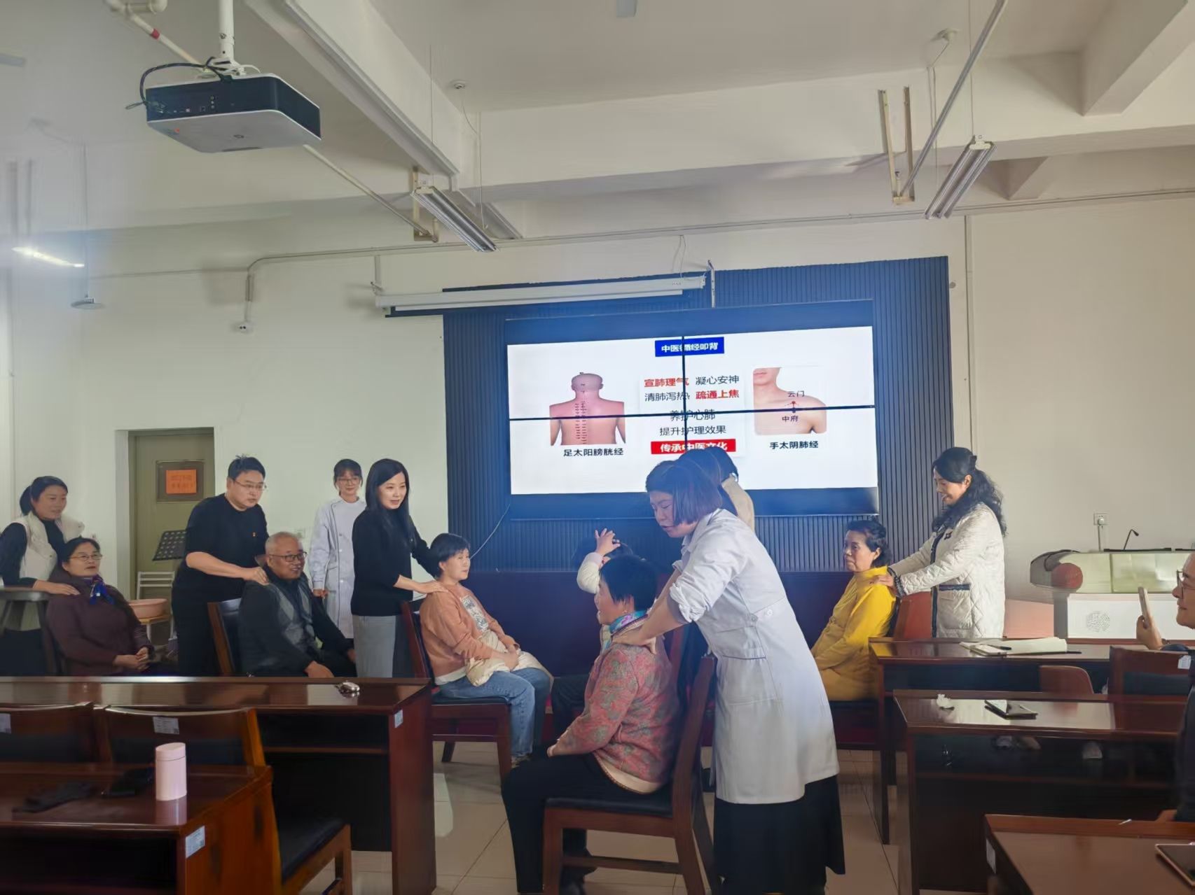 活动特邀学院医学院专业教师围绕《中医保健实操》《合理膳食与营养搭配》等专题,结合中老年人常见疾病问题,进行了细致的讲解与演示。老年大学学员们认真听讲,仔细记录。在急救技能环节,继教学院党员们在讲座老师指导下,现场模拟给老年大学学员进行心肺复苏、止血包扎等操作;在中医保健实操部分,党员们学习穴位按摩、循经拍打的基本手法,现场为老年大学学员推拿按摩、拍打经络,受到老年大学学员学习一致好评。