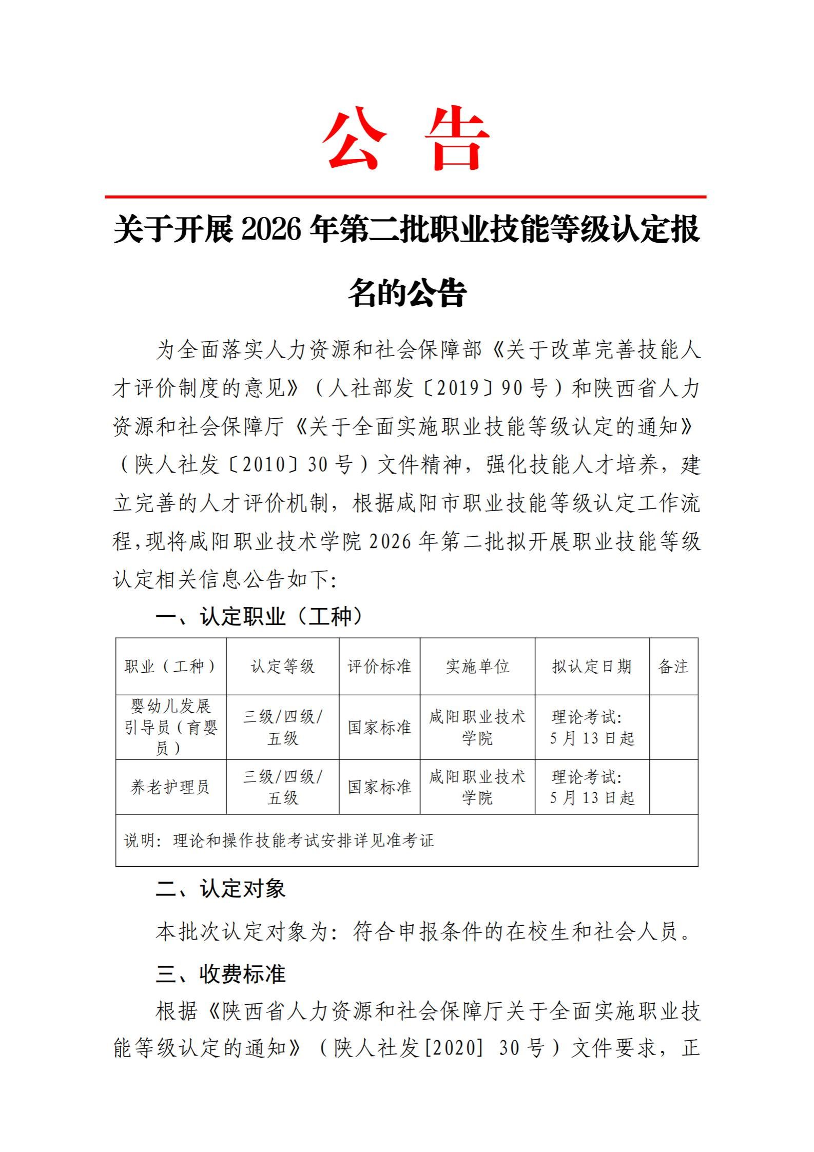 关于开展2026年第二批职业技能等级认定报名的公告